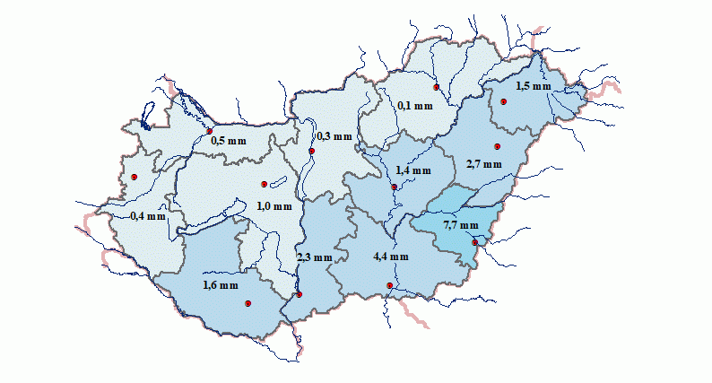 A következő 24 órában várható területi csapadékátlagok