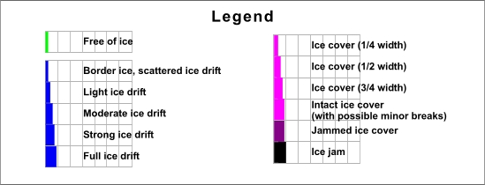 Ice conditions are presented in graphical formbased on the river ice reports of the Regional Water Directorates.